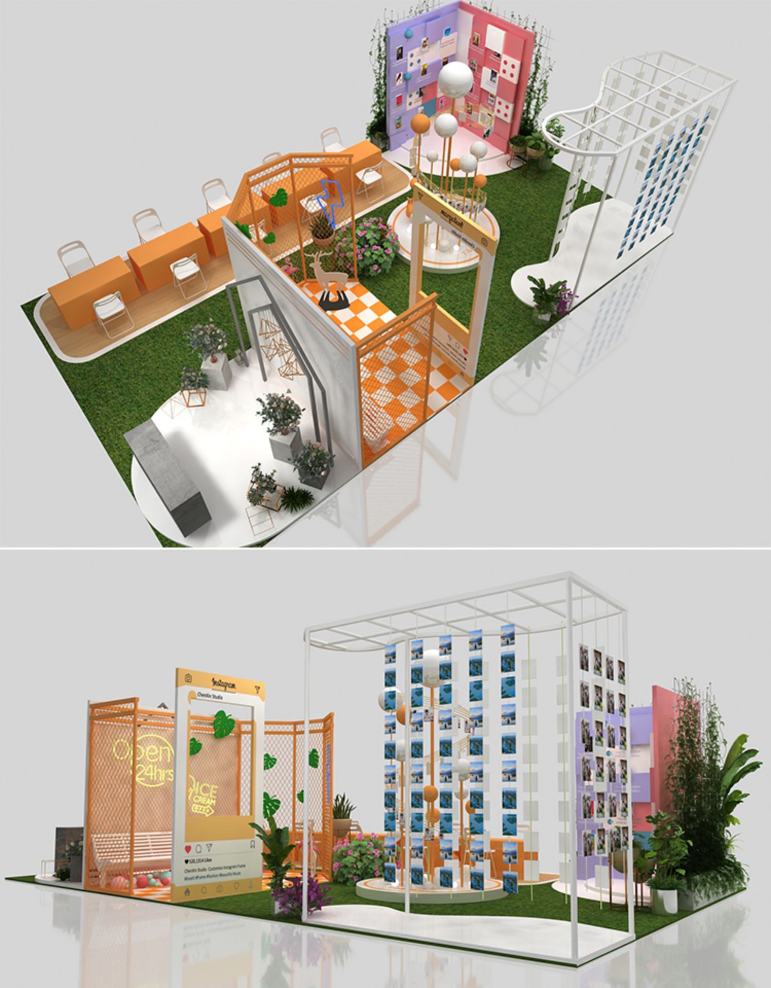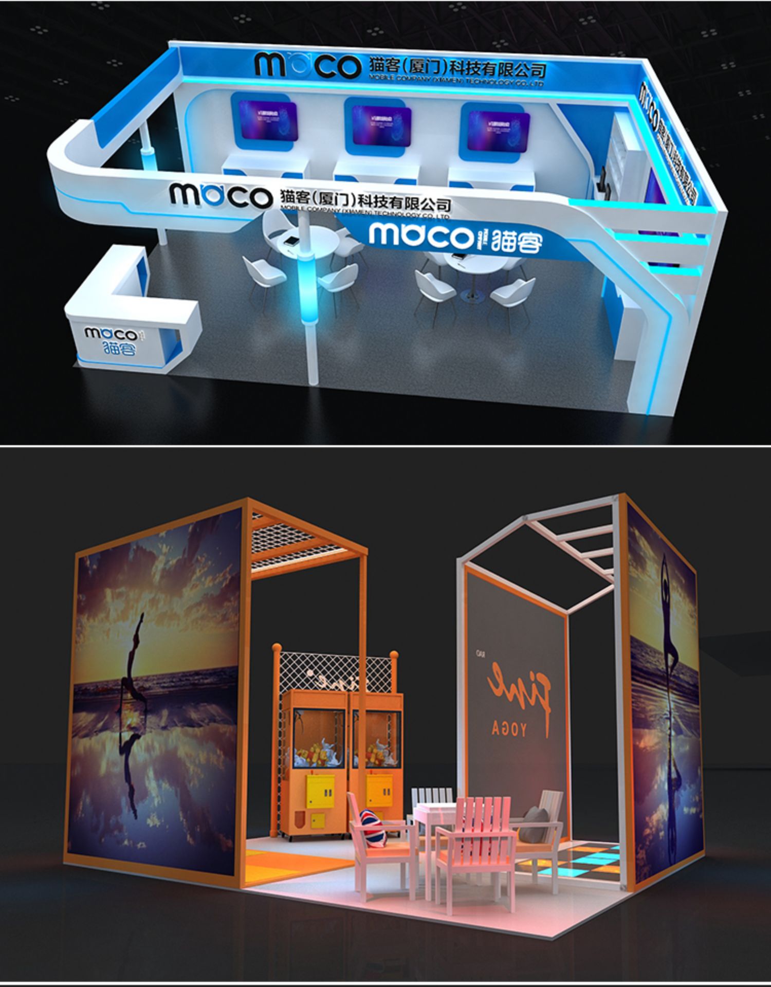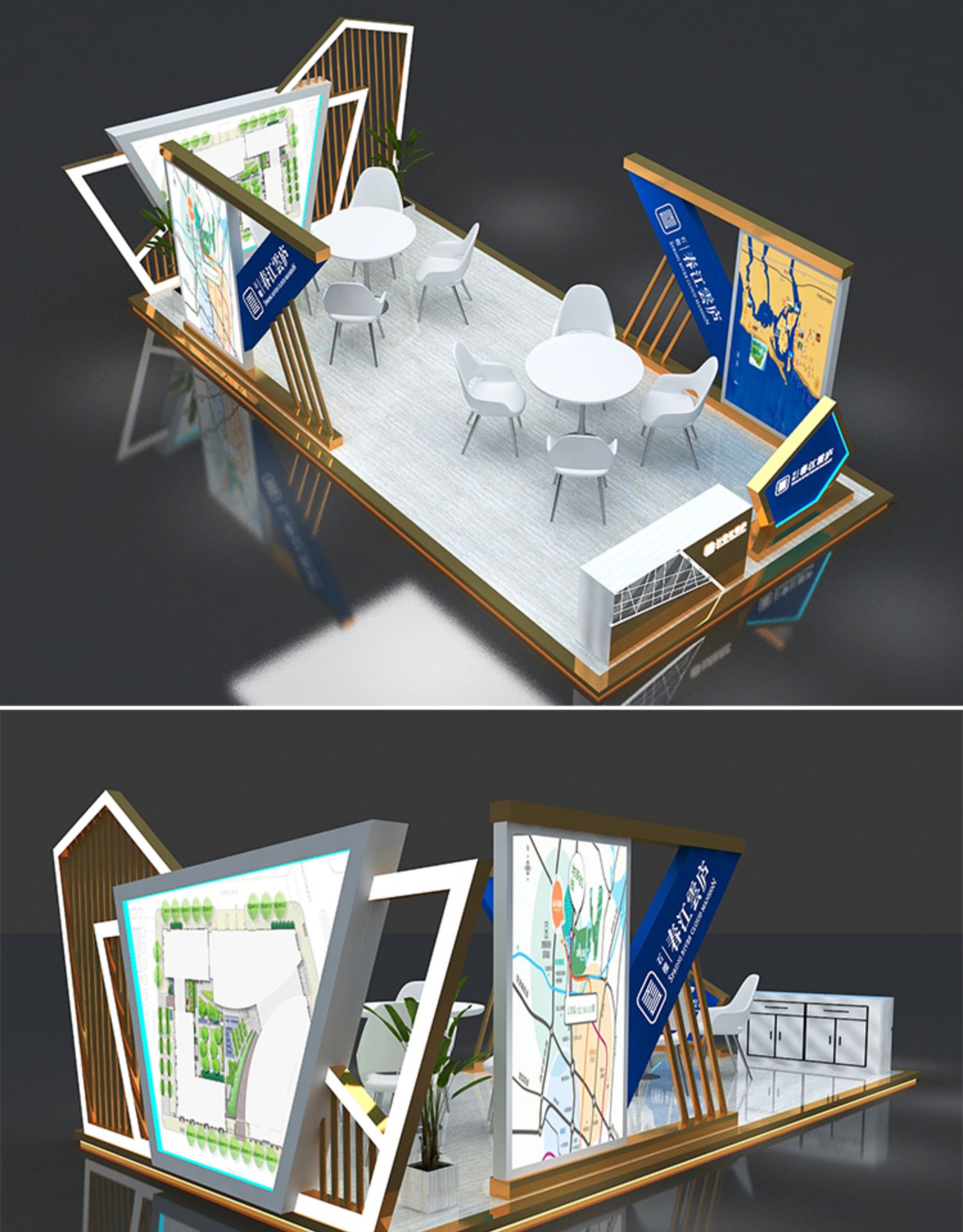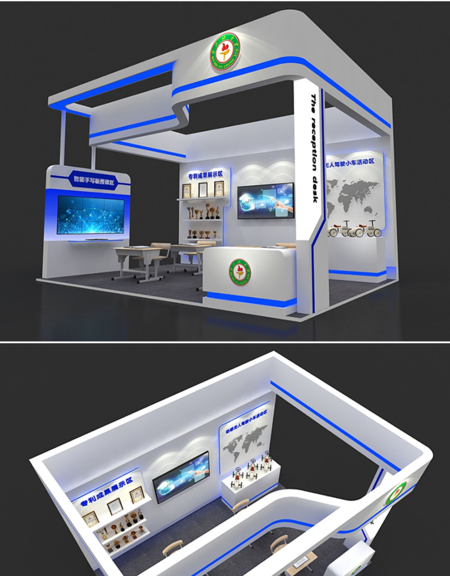 -> 展会展览3D设计特装标准展位地产科技展台商场展示活动效果图制作