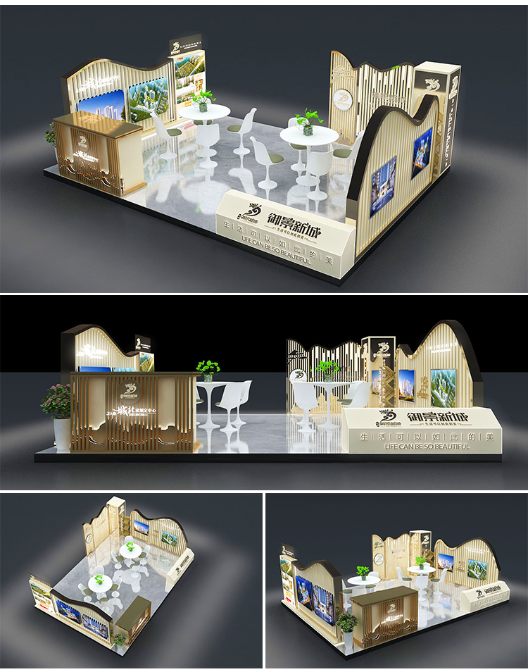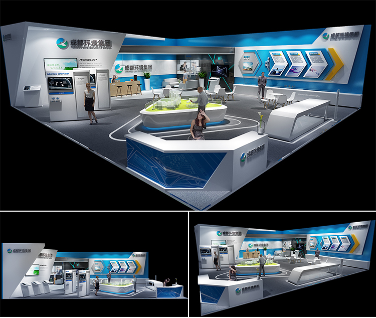 -> 展会展位3d效果图设计企业科技展览商场活动展台厅cad施工图制作